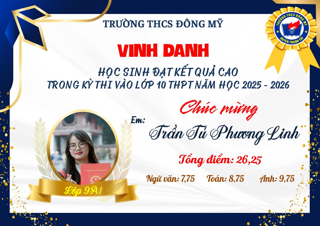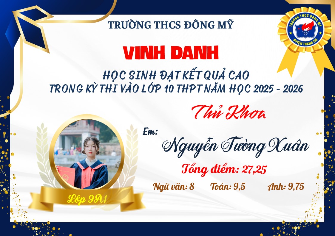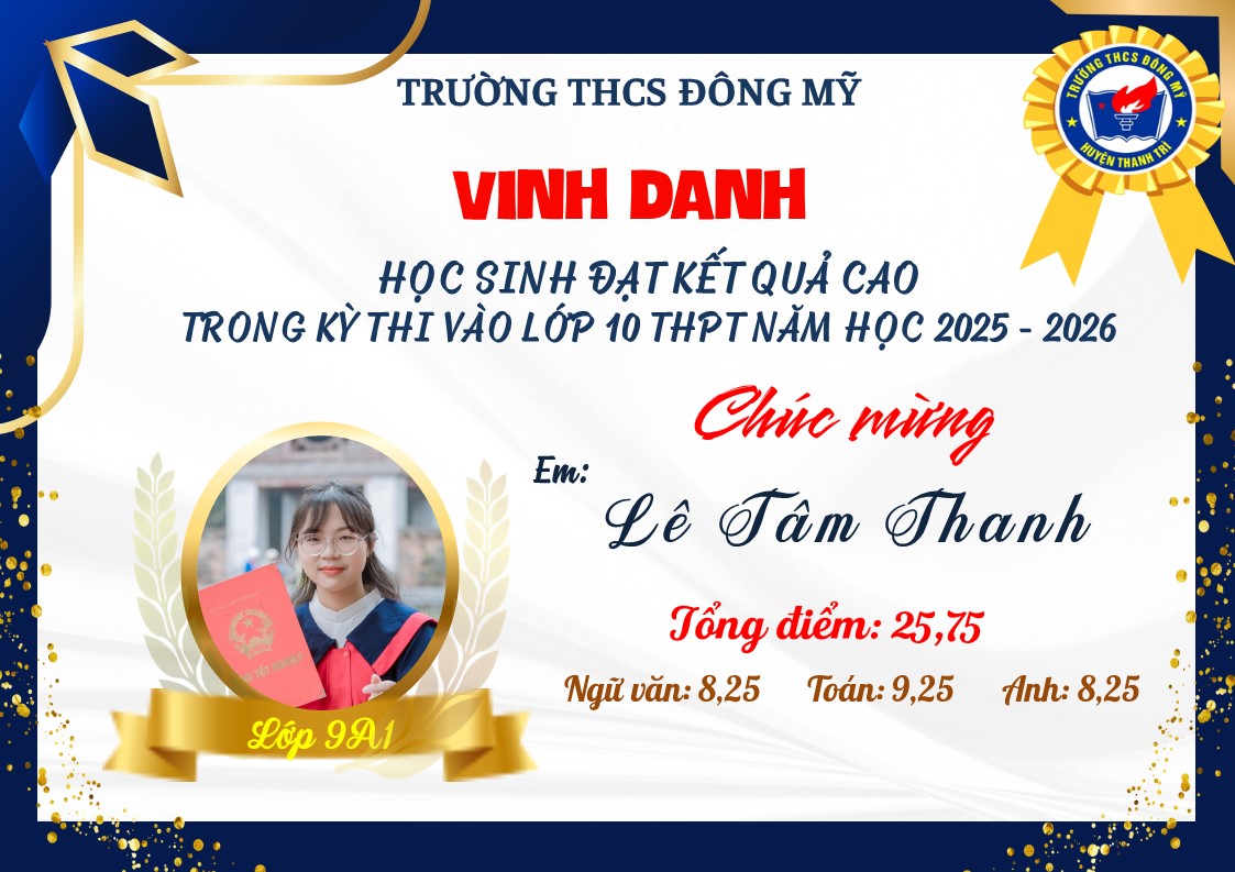 Nhà trường thật tự hào khi được vinh danh những học sinh đạt thành tích cao trong kỳ thi vào lớp 10 THPT năm học 2025-2026!!!