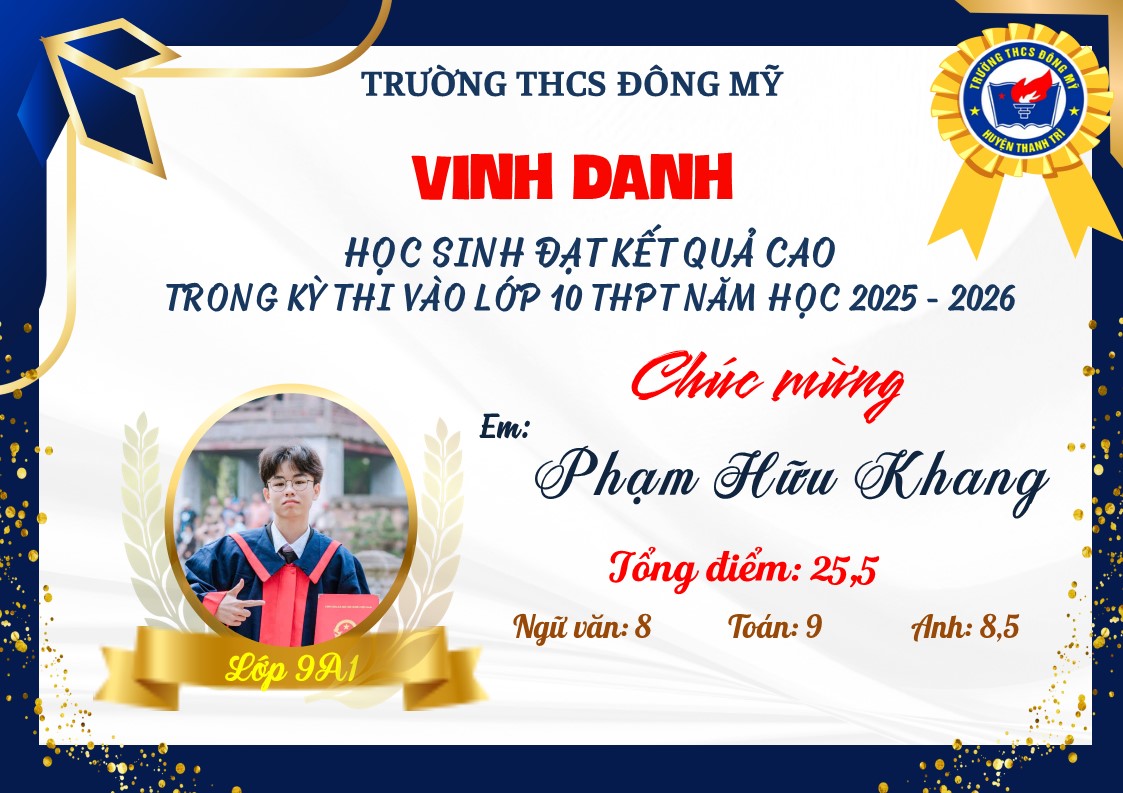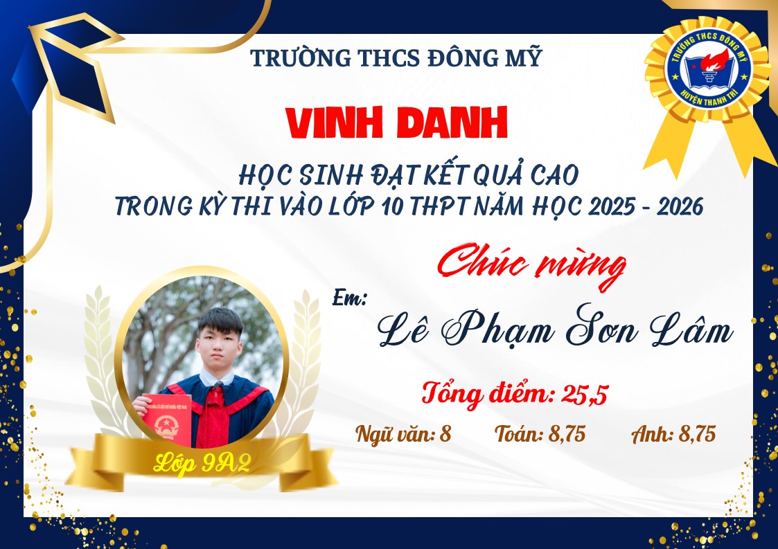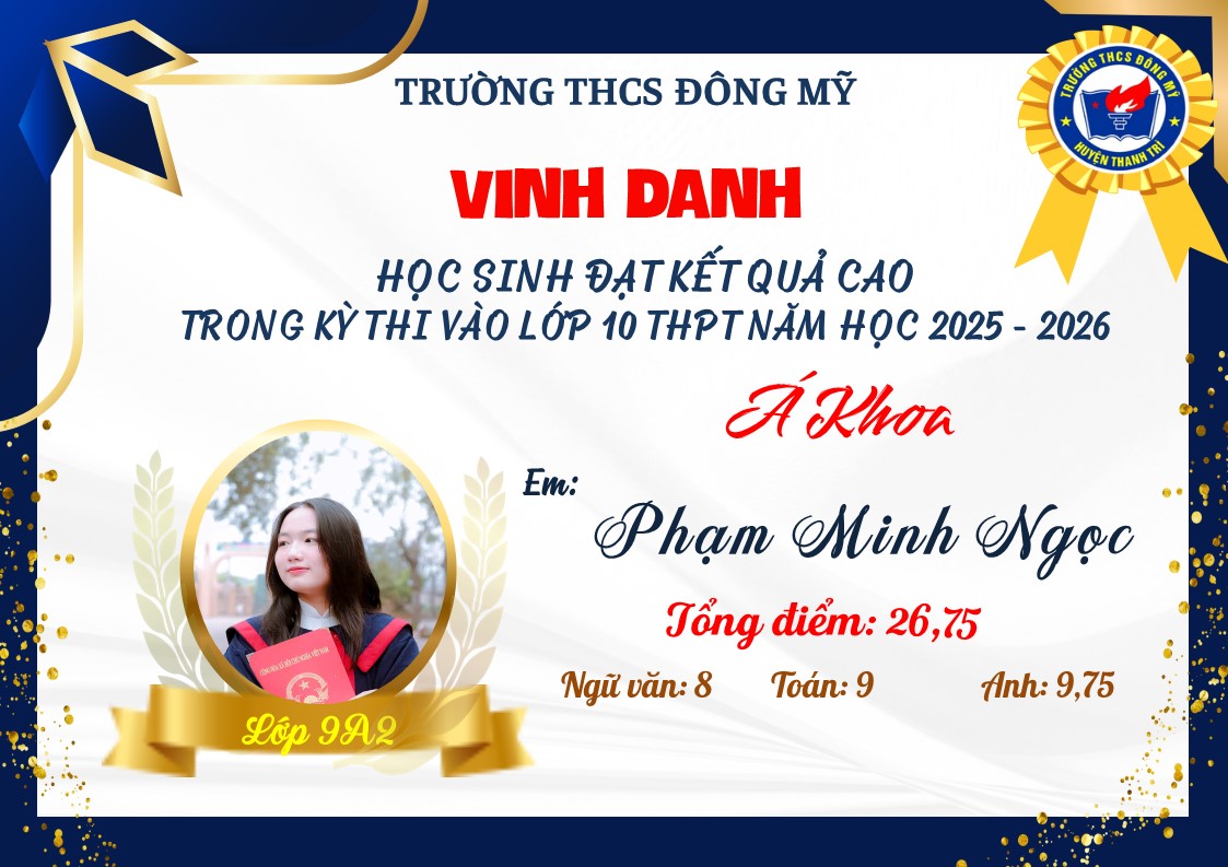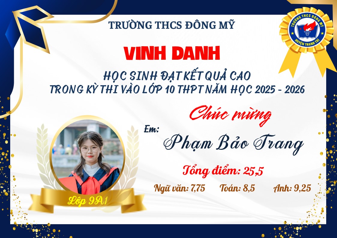 Nhà trường thật tự hào khi được vinh danh những học sinh đạt thành tích cao trong kỳ thi vào lớp 10 THPT năm học 2025-2026!!!