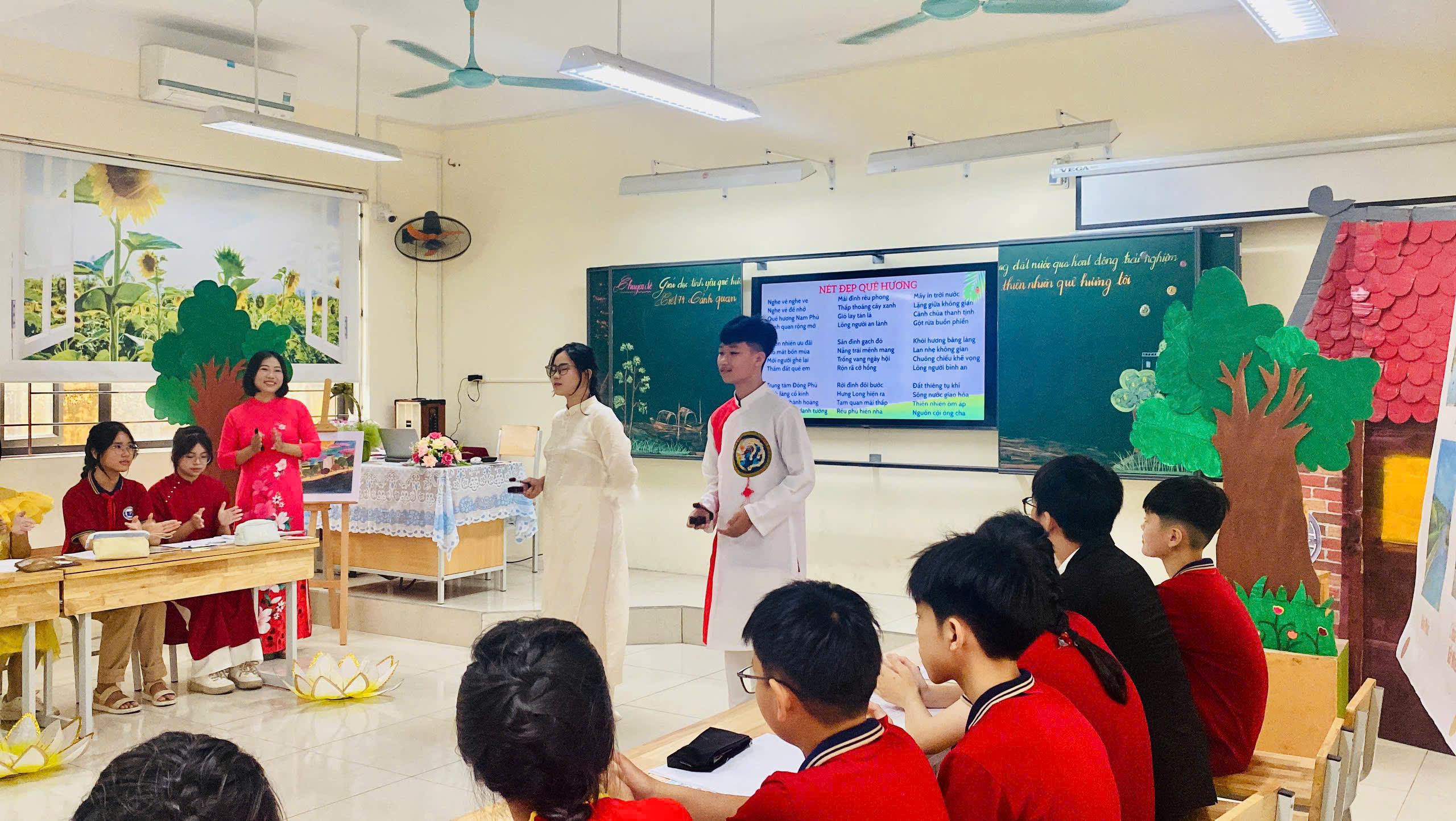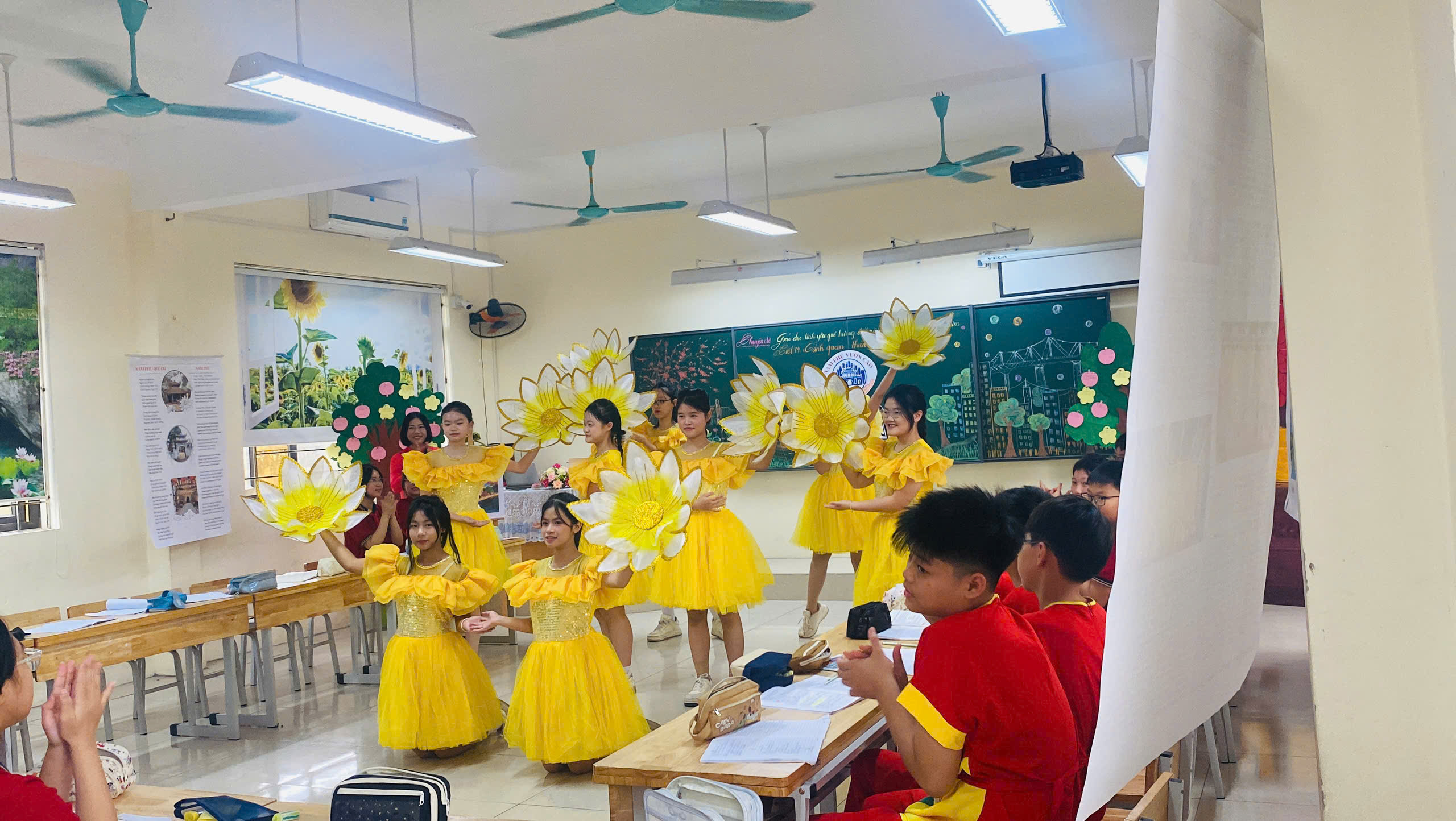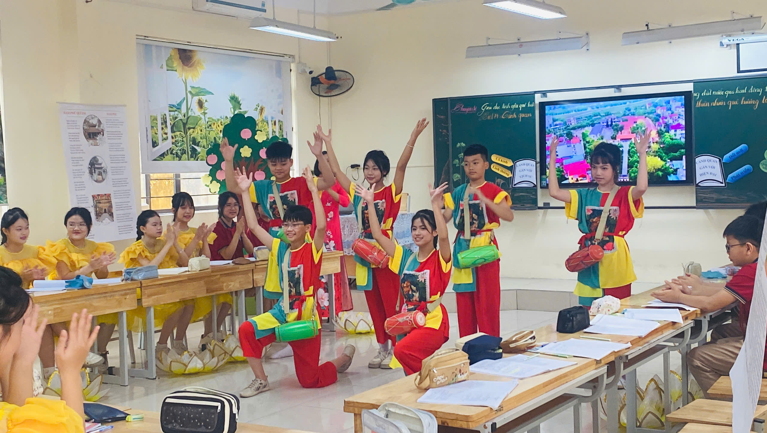 🎭 Sáng tạo không giới hạn: Các em học sinh đã thực sự trở thành "chủ nhân" của tiết học thông qua các hoạt động: từ sáng tác đến thể hiện các tiểu phẩm, vè Việt - Anh, đi thực tế, múa, hát các tiết mục văn nghệ đặc sắc ca ngợi quê hương.