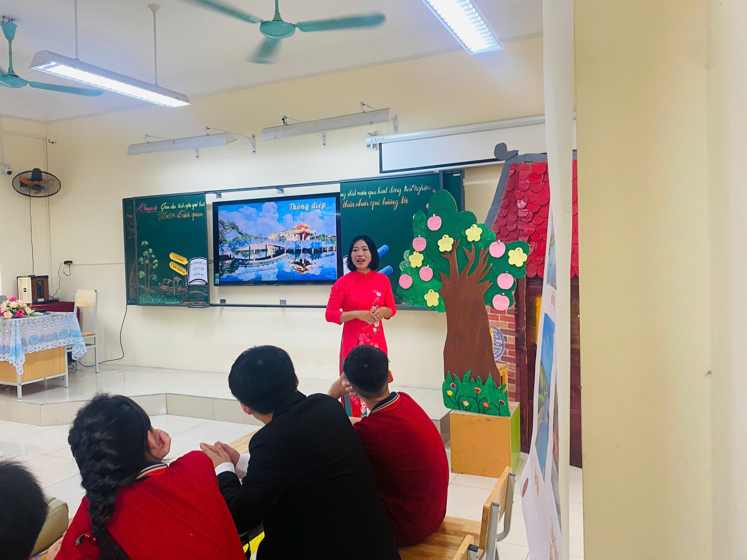 📍 Hành trình kết nối: Không còn là những bài giảng lý thuyết khô khan, cô Thu Trang đã khéo léo dẫn dắt các em học sinh đi qua từng cung bậc cảm xúc, từ những đi tích lịch sử và cảnh quan thiên nhiên đến vẻ đẹp đổi mới từng ngày trên quê hương Nam Phù.