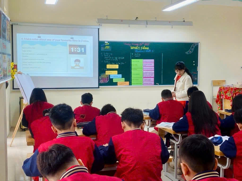 📚🖌 Cô giáo Nguyễn Thị Vân – GV tổ Năng khiếu, với tiết dạy môn Tiếng Anh 7 tại lớp 7A1.