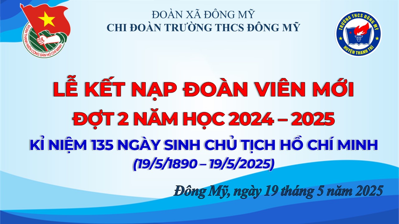 🇻🇳Trong ngày đặc biệt này, Chi đoàn trường THCS Đông Mỹ long trọng tổ chức Lễ kết nạp Đoàn viên TNCSHCM đợt 2 cho 15 bạn Đội viên ưu tú đến từ các chi đội khối 9. Sau quá trình miệt mài phấn đấu, hôm nay, các em thật vinh dự và tự hào khi được đứng trong hàng ngũ của Đoàn TNCS Hồ Chí Minh, cùng nhau đọc lời hứa quyết tâm học tập, rèn luyện, sống có lý tưởng, góp phần xây dựng lớp thanh niên thời đại mới!