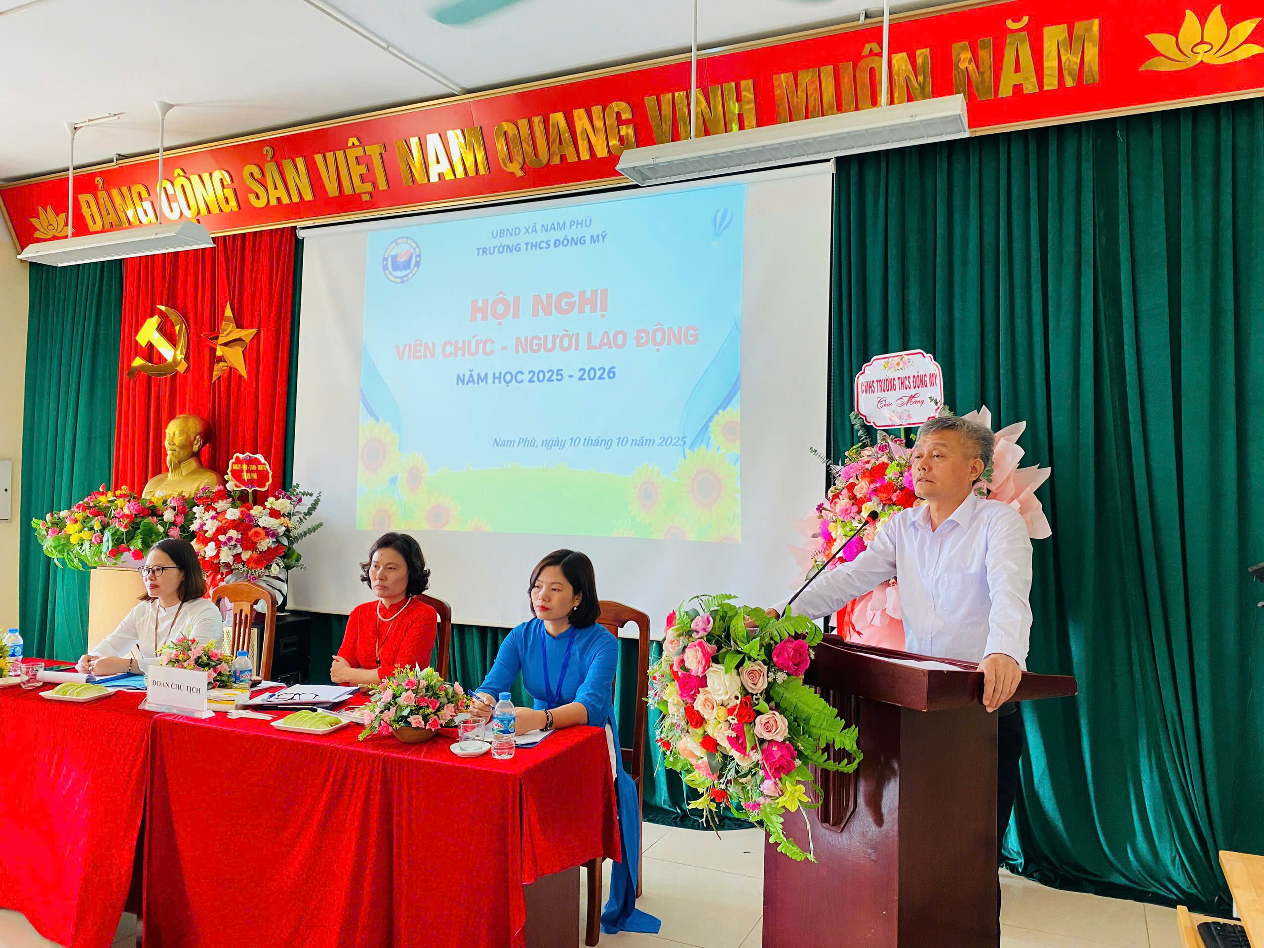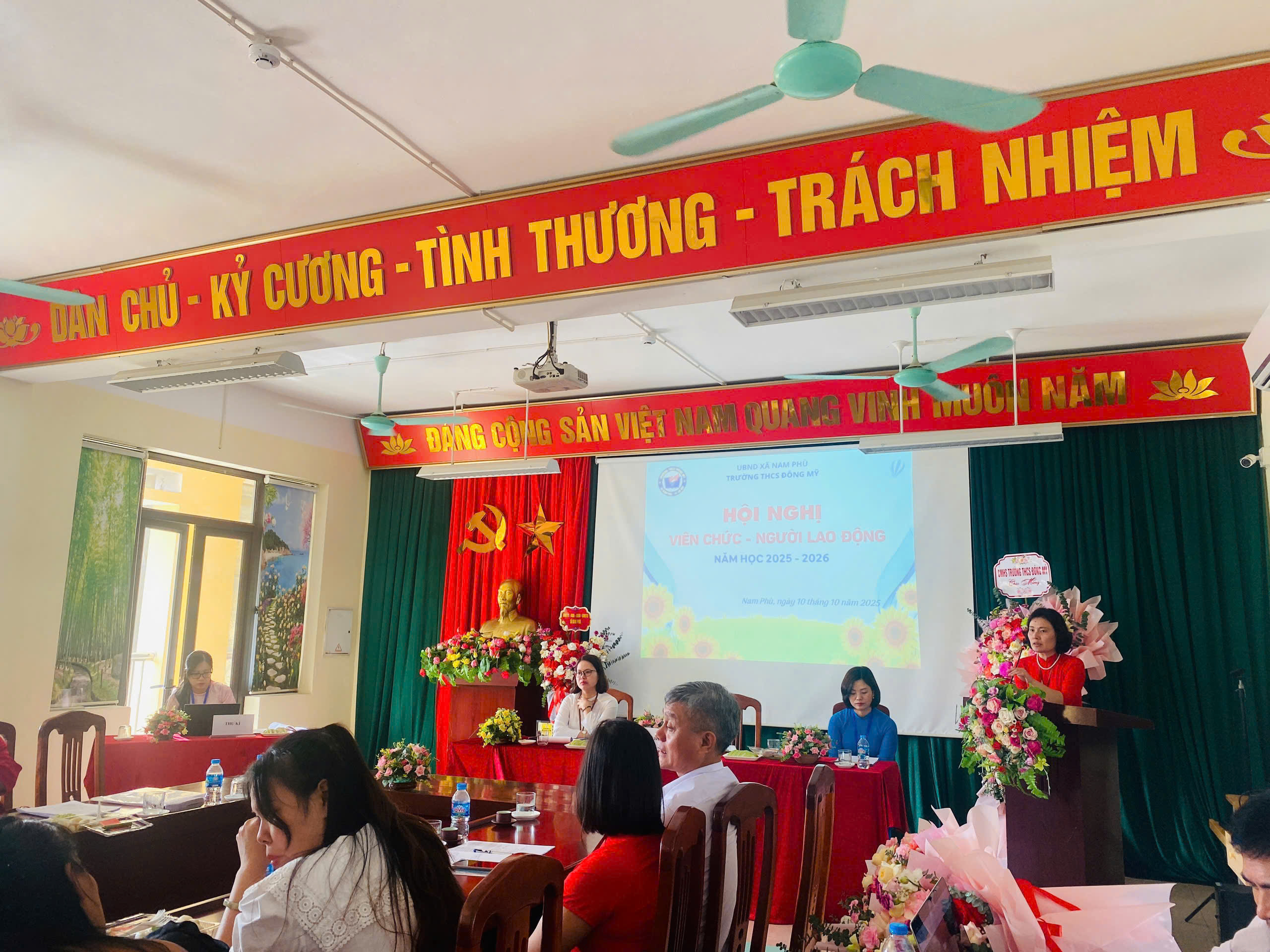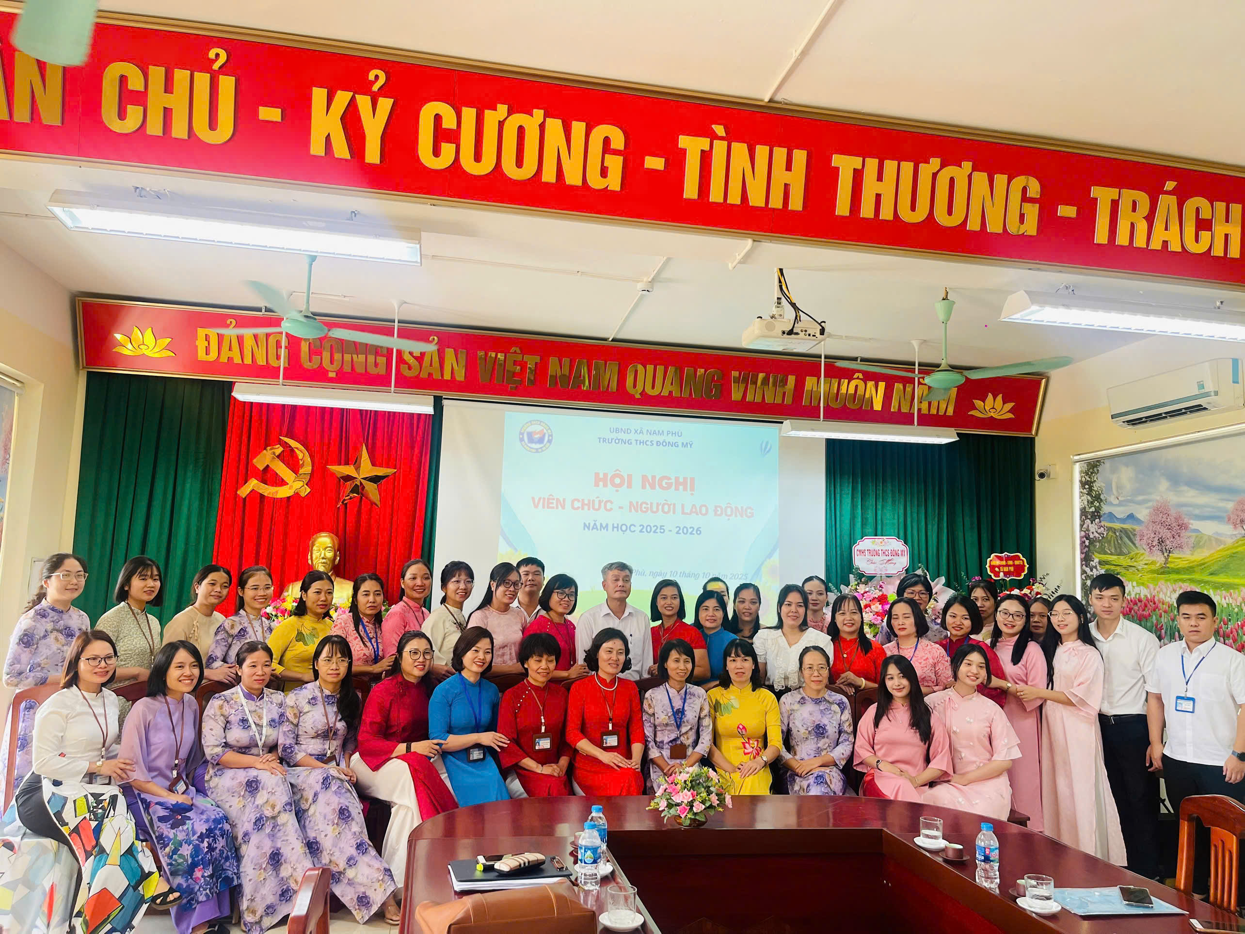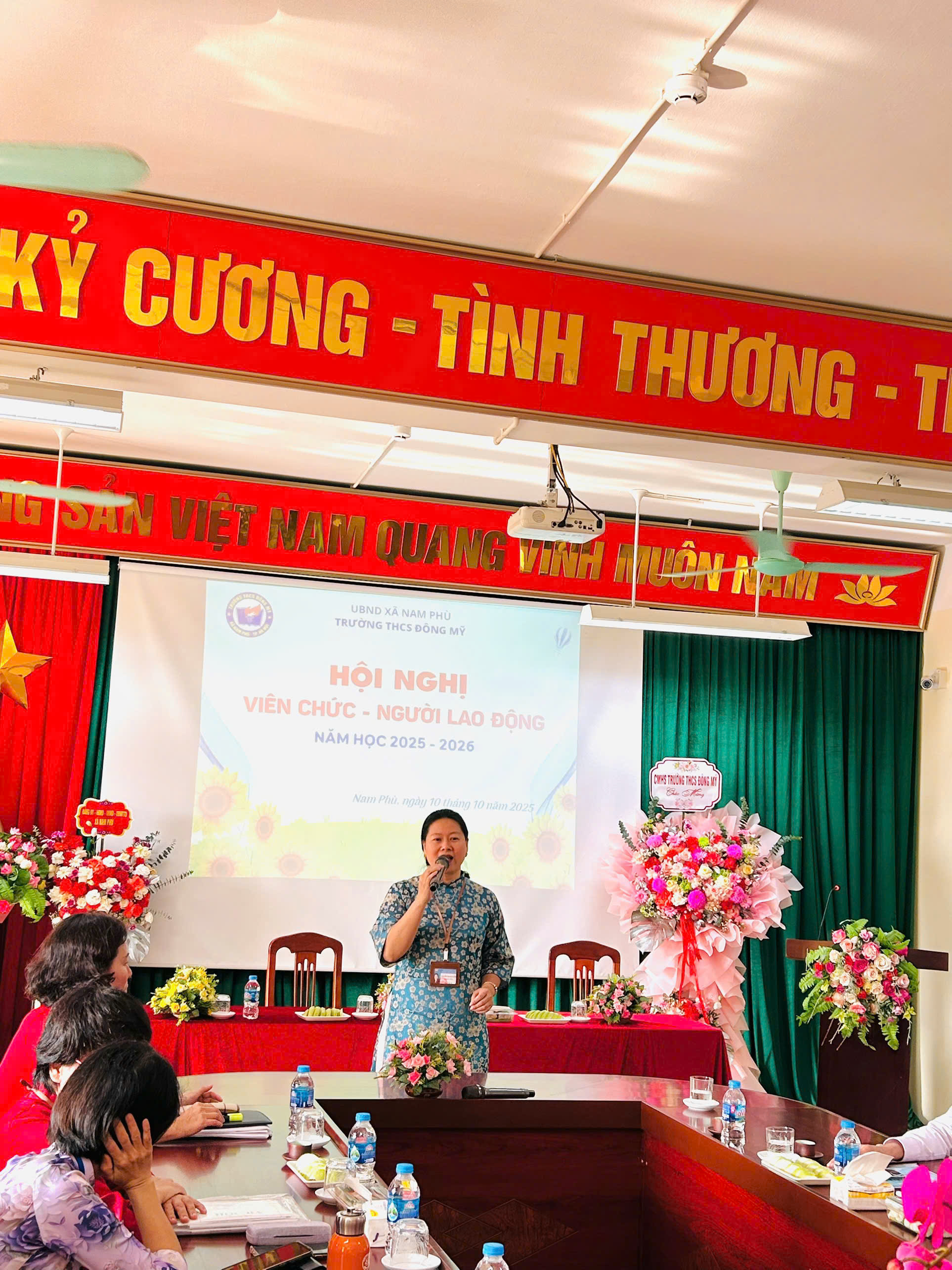 🌼 Sáng ngày 10 tháng 10 năm 2025, trường THCS Đông Mỹ long trọng tổ chức hội nghị viên chức - người lao động năm học 2025 – 2026. Đây là hoạt động có ý nghĩa quan trọng, thể hiện tinh thần dân chủ, đoàn kết và trách nhiệm của tập thể cán bộ, giáo viên, nhân viên nhà trường trong việc thực hiện nhiệm vụ năm học.