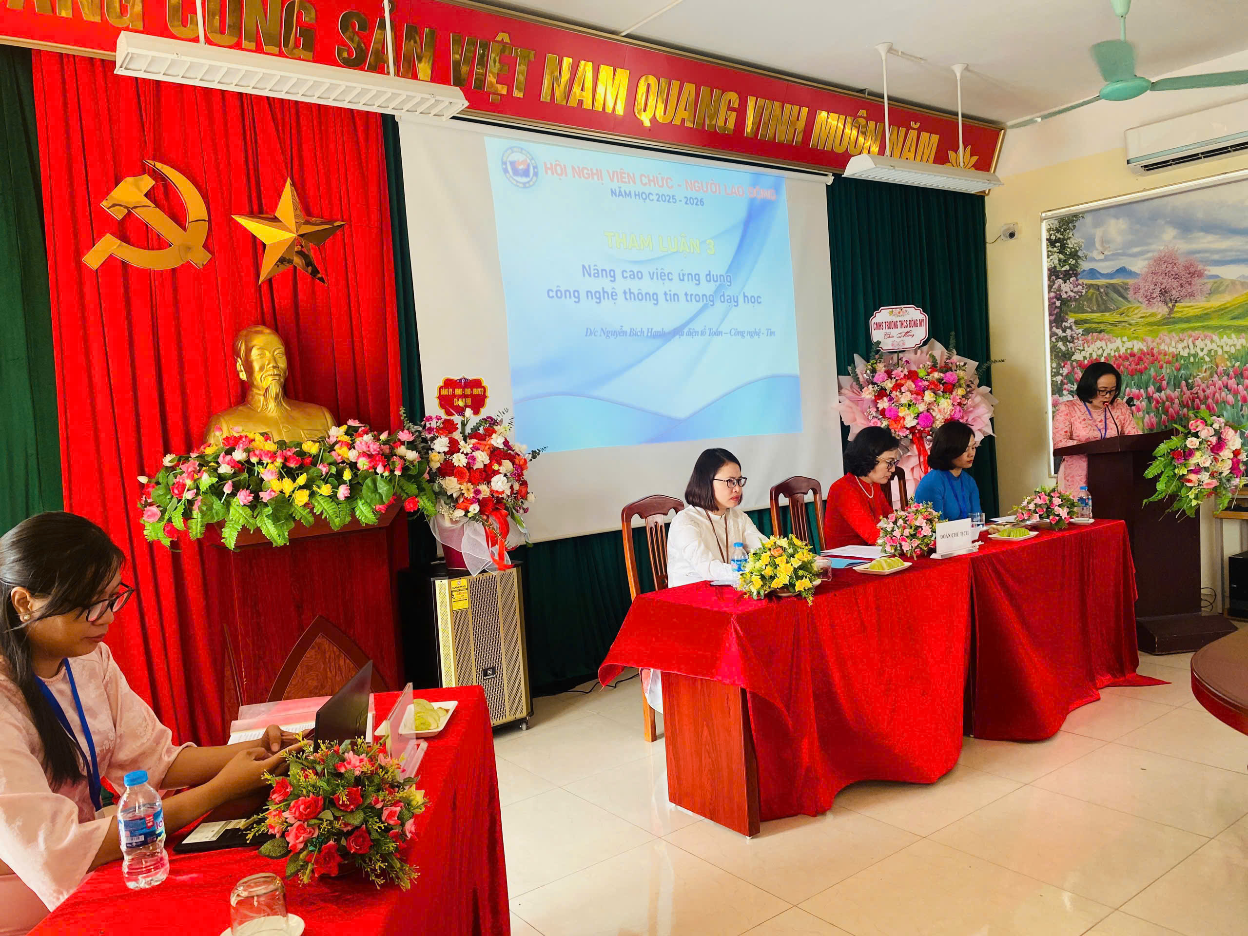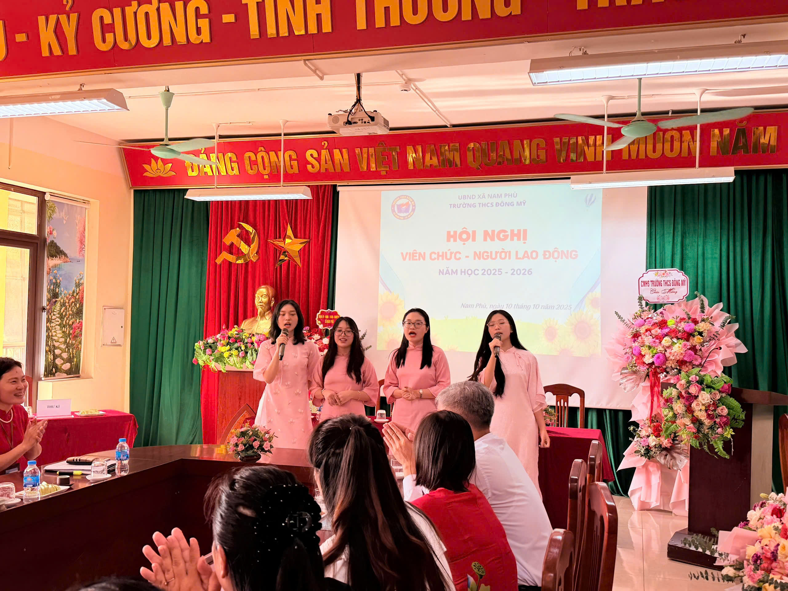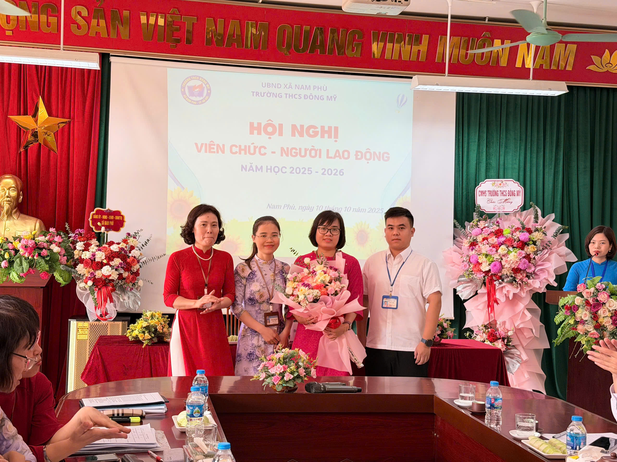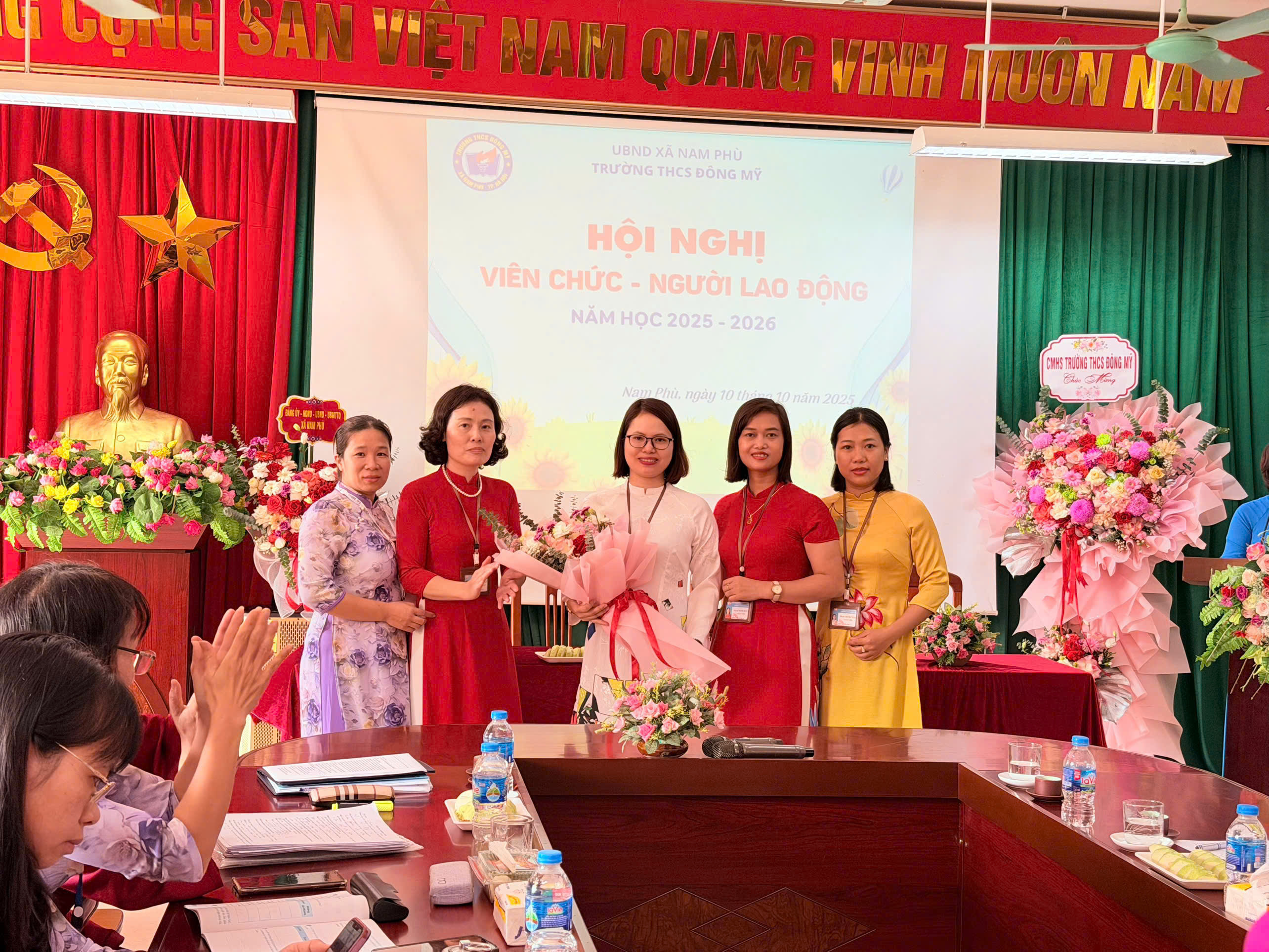 🌼 Sáng ngày 10 tháng 10 năm 2025, trường THCS Đông Mỹ long trọng tổ chức hội nghị viên chức - người lao động năm học 2025 – 2026. Đây là hoạt động có ý nghĩa quan trọng, thể hiện tinh thần dân chủ, đoàn kết và trách nhiệm của tập thể cán bộ, giáo viên, nhân viên nhà trường trong việc thực hiện nhiệm vụ năm học.