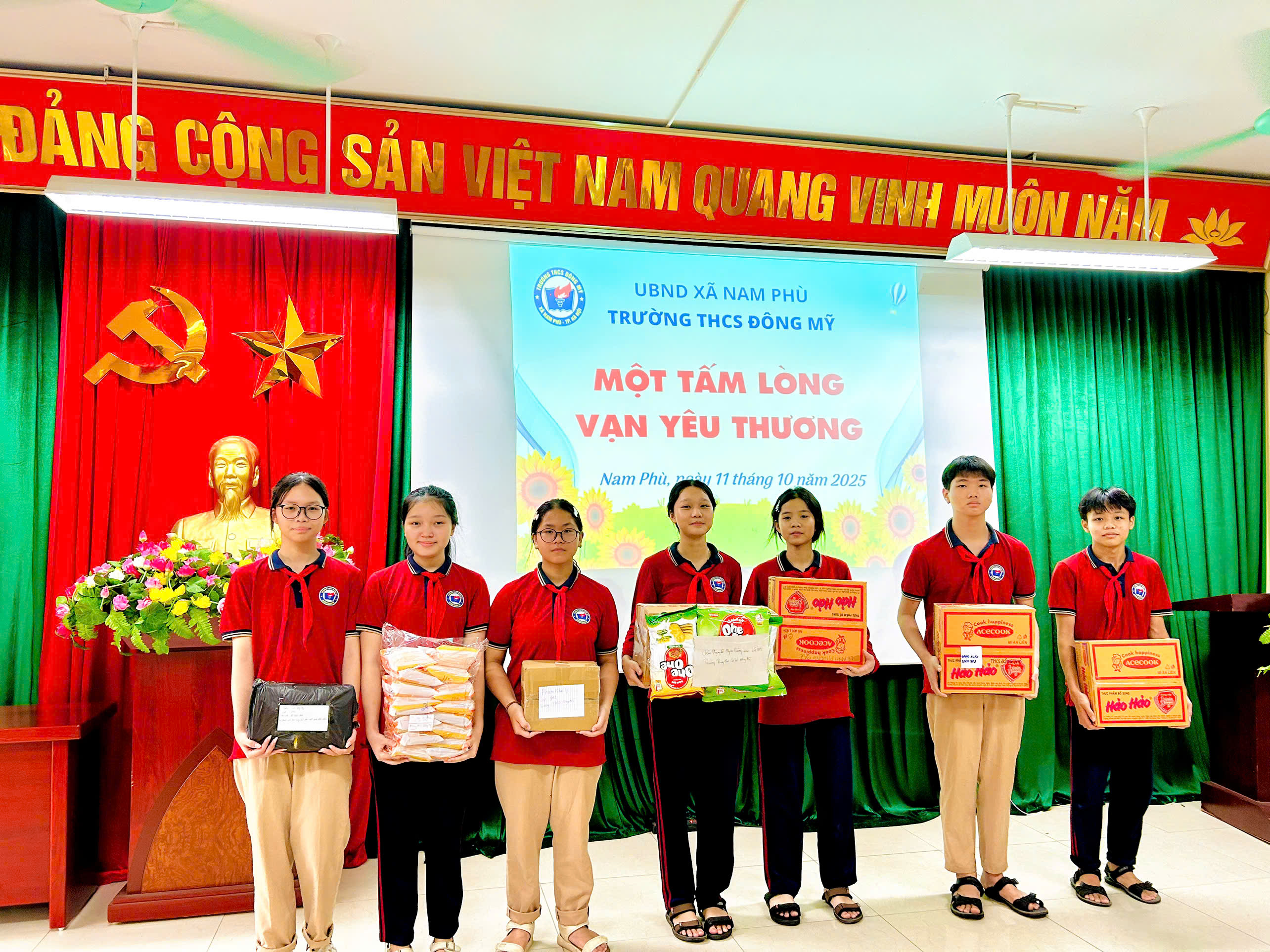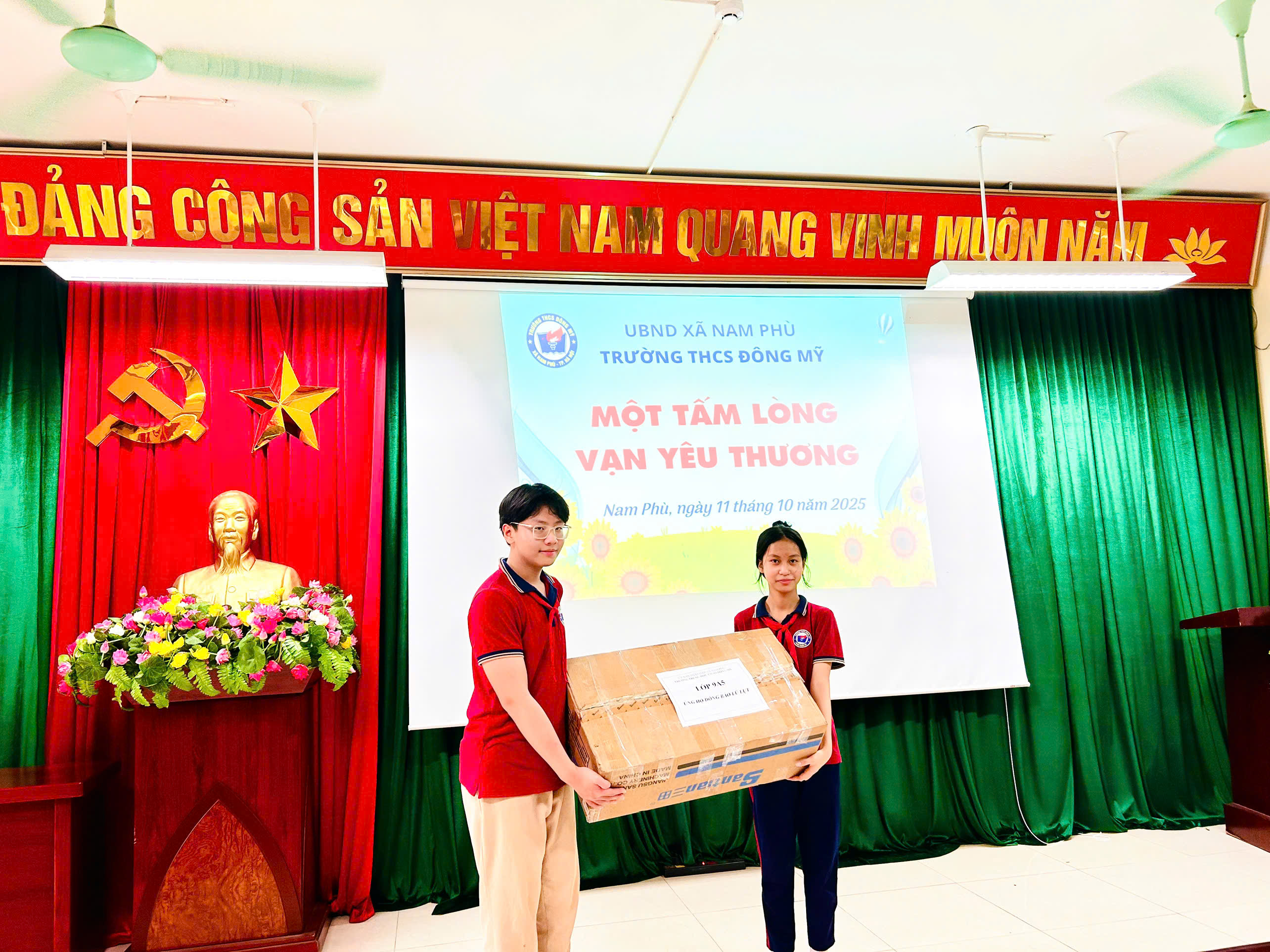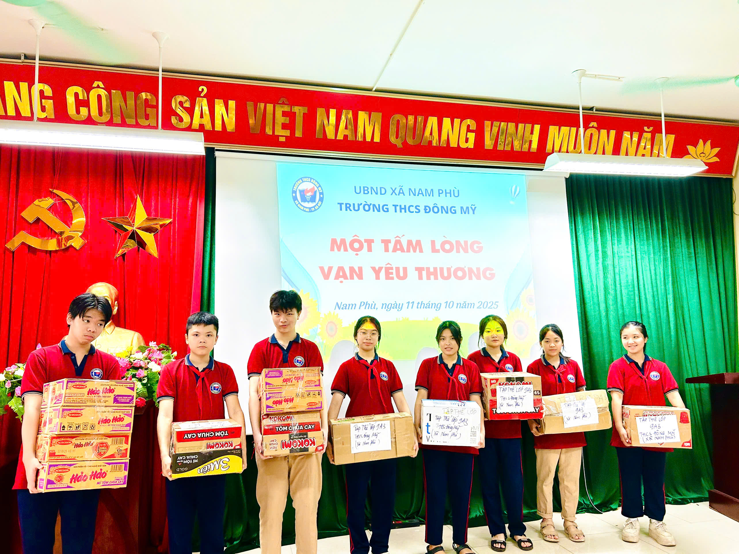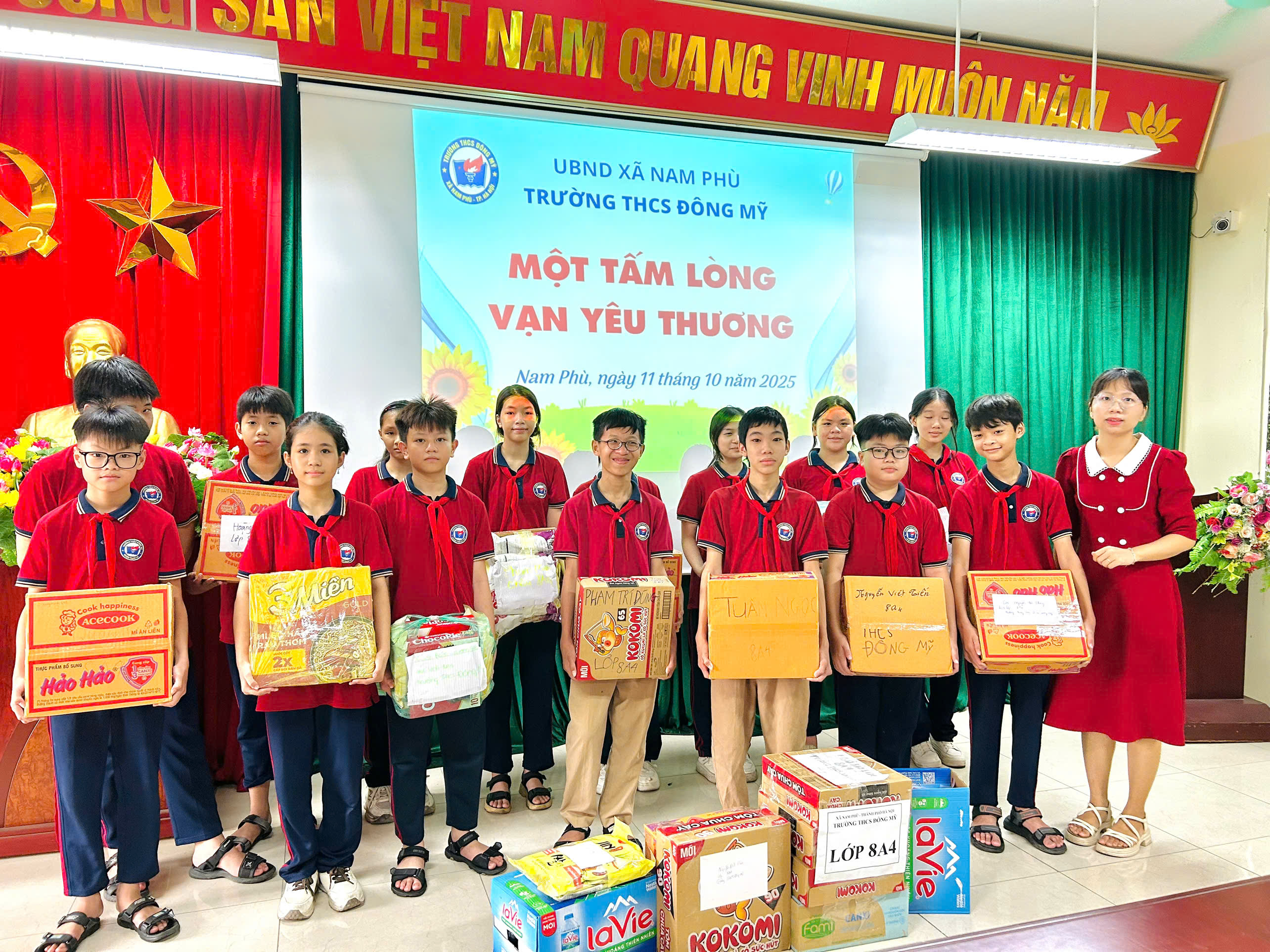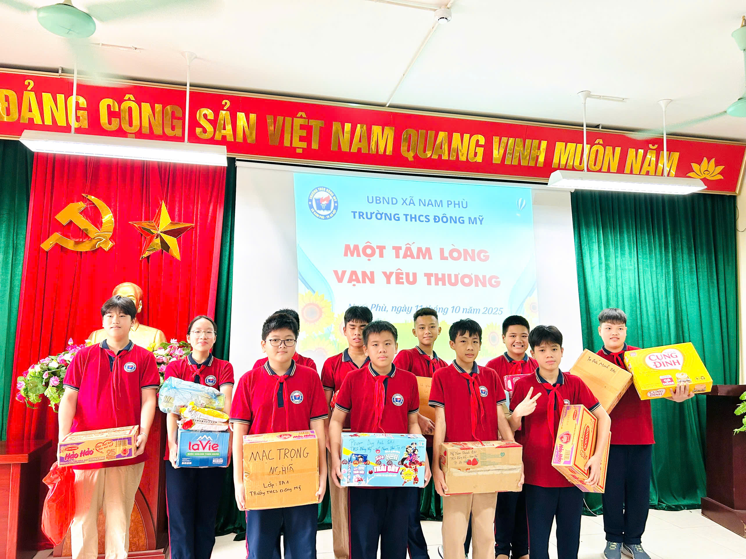 🌻 Hưởng ứng lời kêu gọi của Sở Giáo dục và Đào tạo Hà Nội về việc ủng hộ đồng bào bị bão lũ, với tinh thần “Vì đồng bào ruột thịt – Lá lành đùm lá rách”, hôm nay ngày 11/10/2025 Trường THCS Đông Mỹ phát động chương trình “Một tấm lòng – Vạn yêu thương”, kêu gọi sự chung tay, sẻ chia của toàn thể cán bộ, giáo viên, nhân viên, phụ huynh và học sinh nhà trường. 🌷